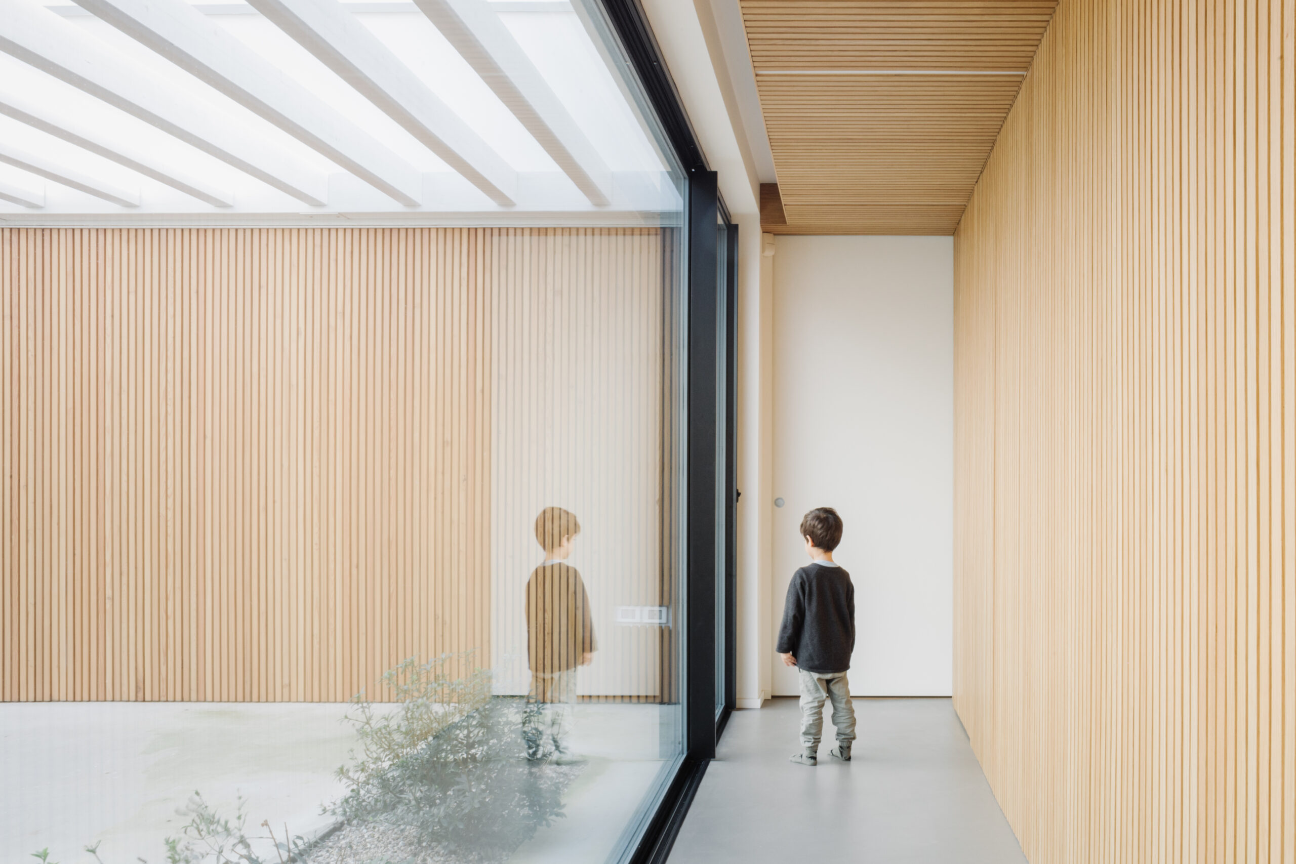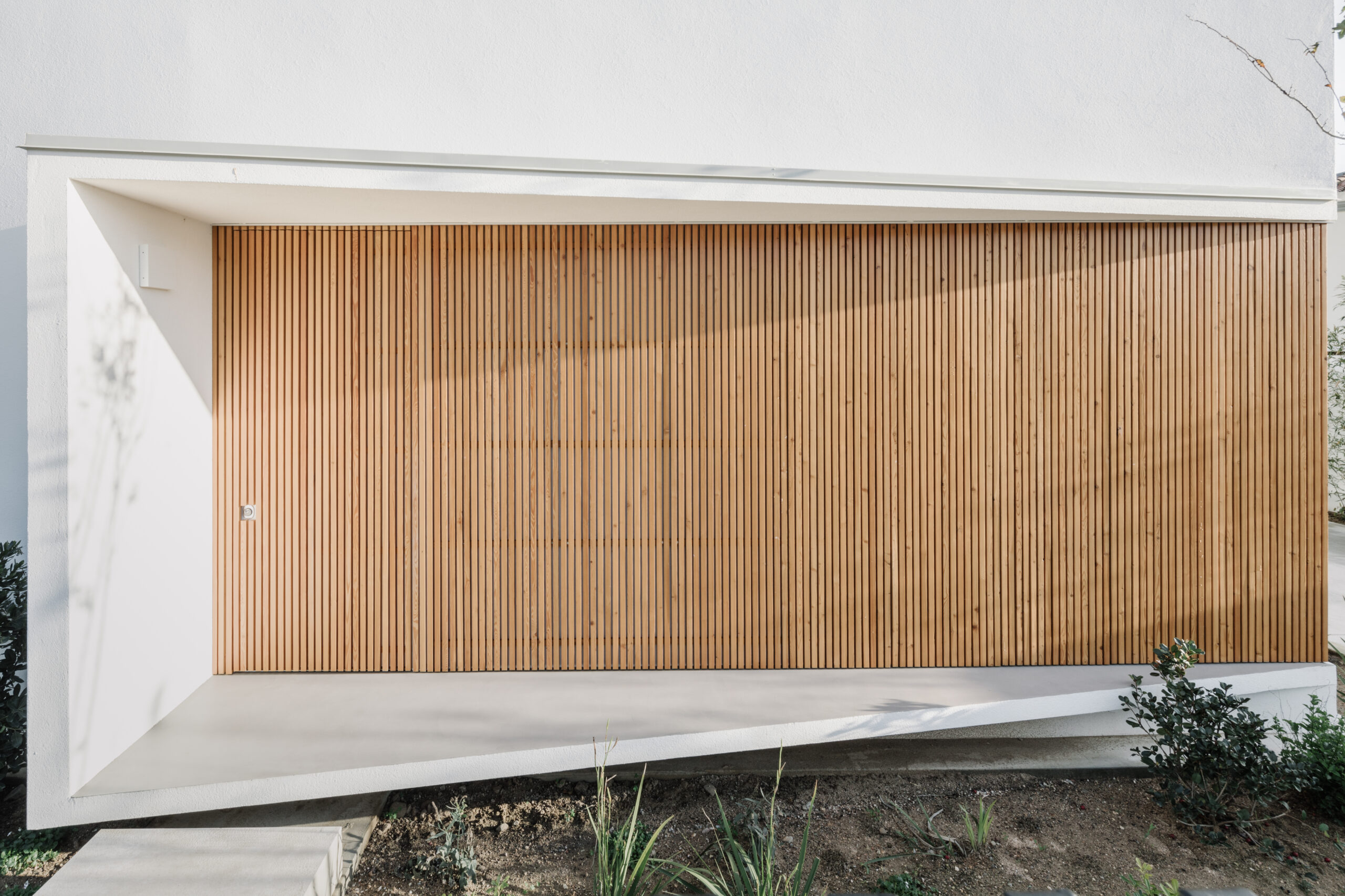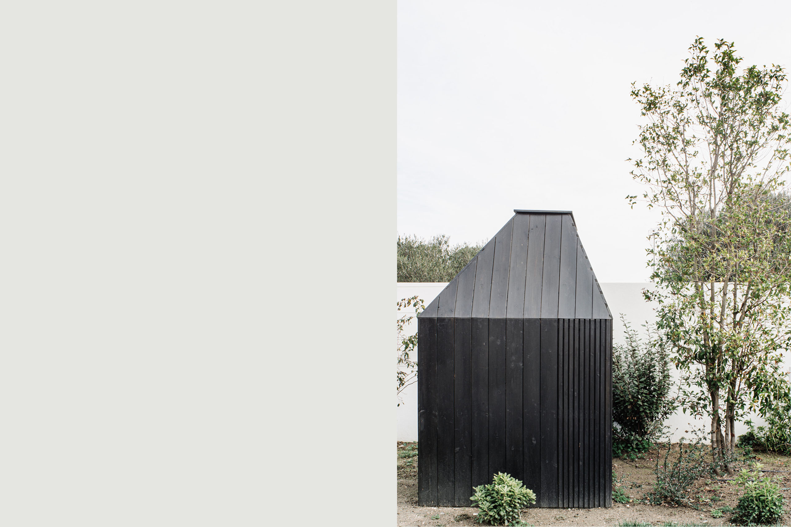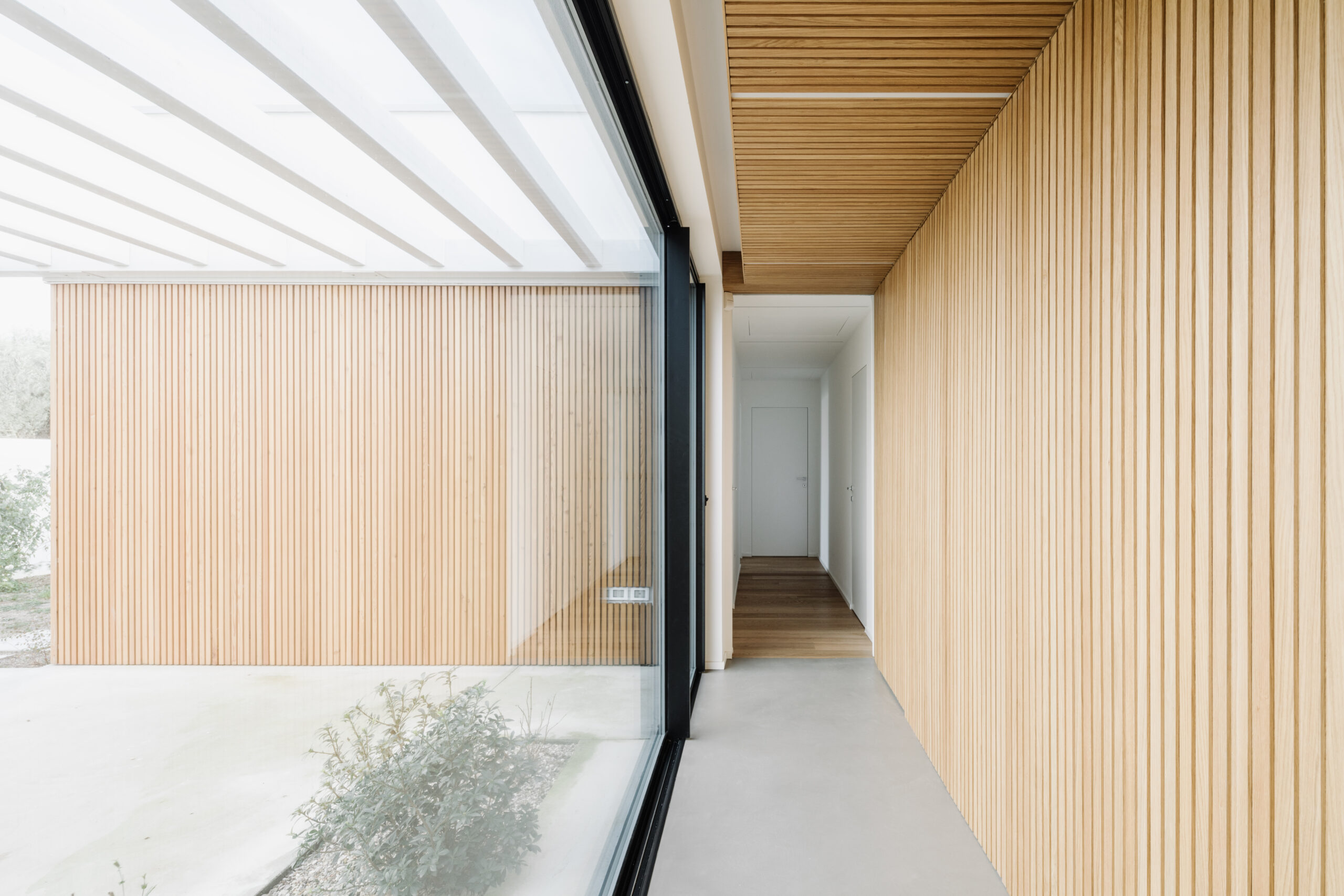 Per gli spazi esterni, la casa è rivestita da circa 1000 listelli di Larice.